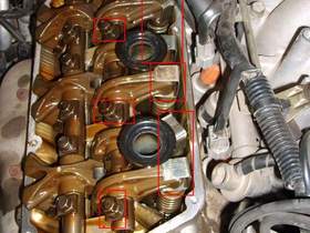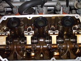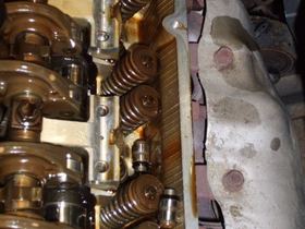 Bild 4: zeigt die vordere Bank ohne Kipphebelwelle mit zwei raus gefallenen Hydros.