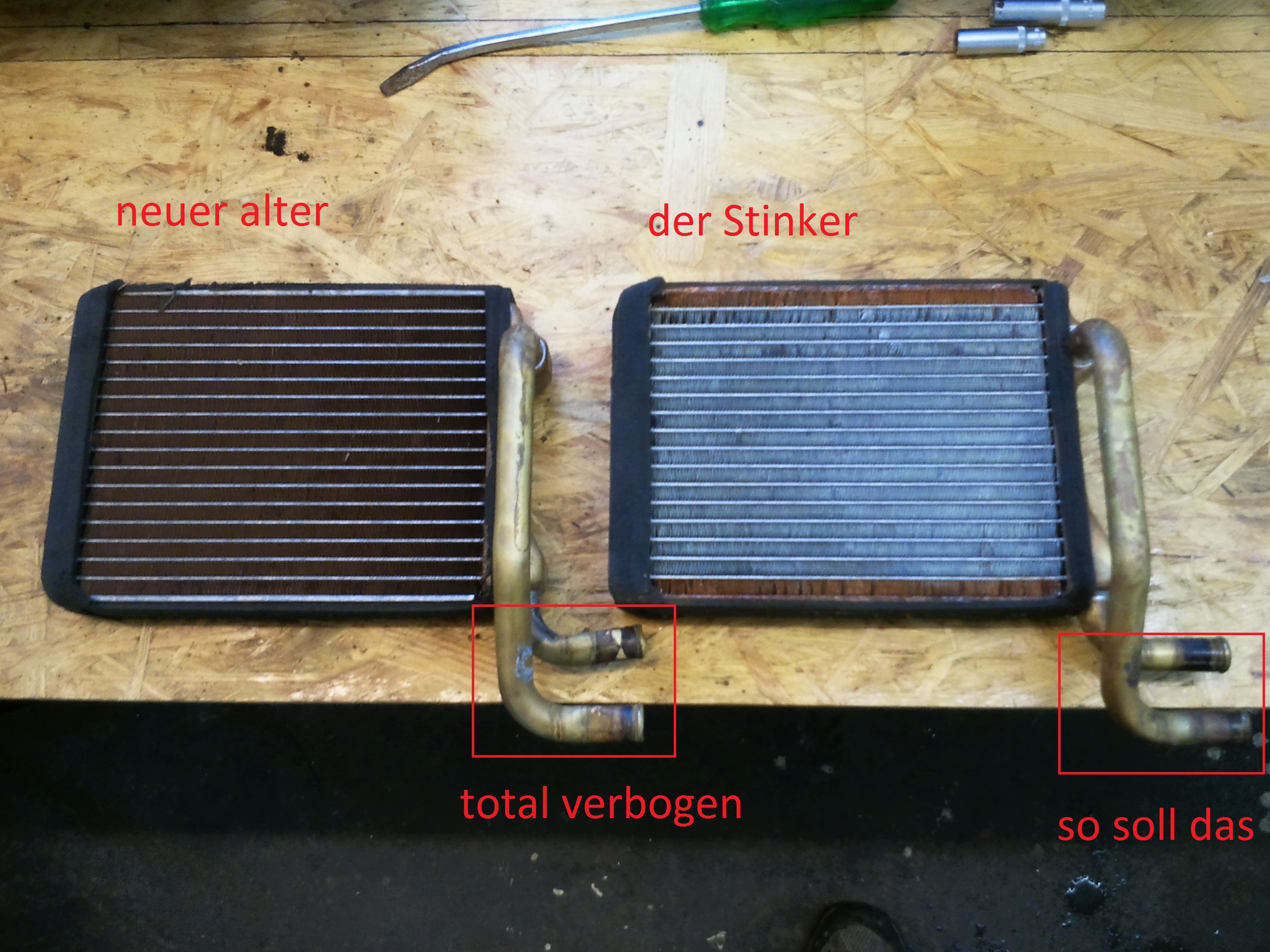 Leider war der Anschluß der neuen Heizung total deformiert. Wahrscheinlich gingen die Schläuche nicht ab und dan versucht mit ner Zange da rumzuwürgen... :cursing: