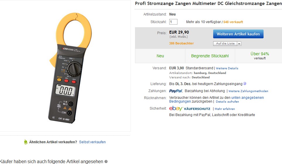 Nachdem ich nun meine LiMa erneuert hab und da keine Leistungsdaten draufstehen, hab ich beschlossen mir ein Amperemeter zuzulegen um mal zu messen was sie rausbringt. Da ich es selten brauchen werde und es auch nicht auf Hypergenau sein muss, hab ich mich für dieses hier entschieden: