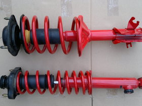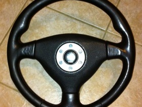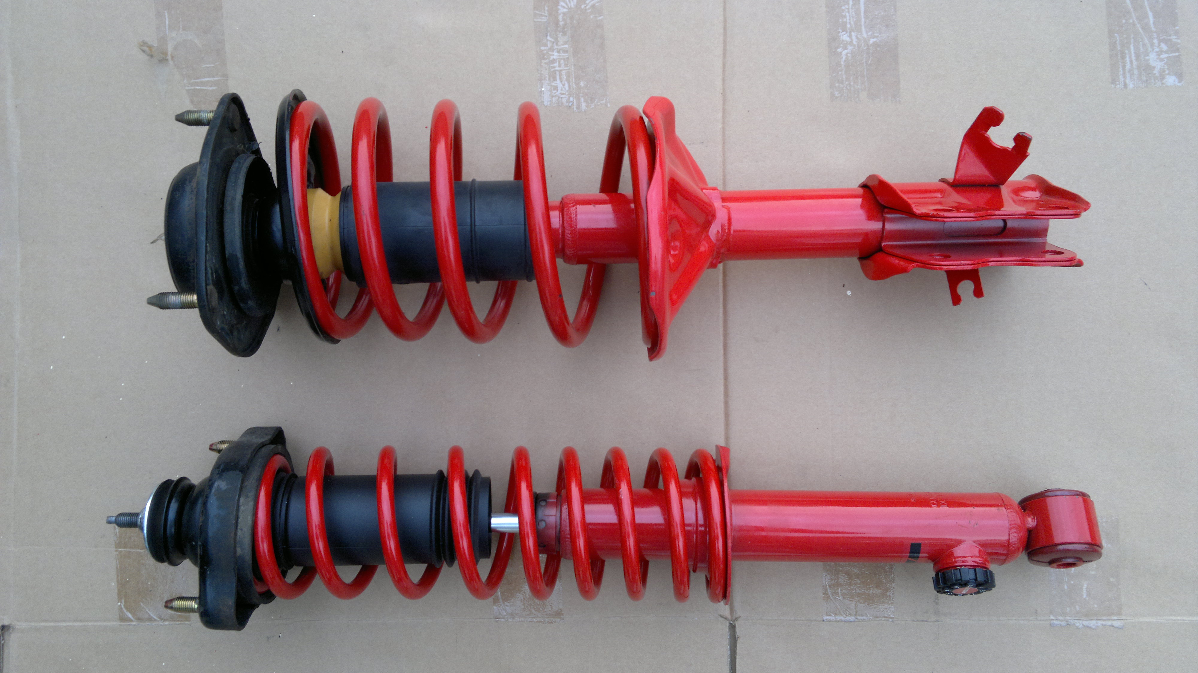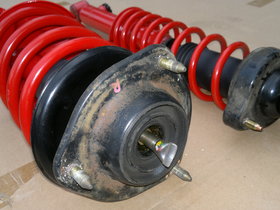 Die ersten Teile für den Aufbau sind rangeschafft: Kayaba AGX Komplettfahrwerk (härteverstellbar) und ein Evo 6 Lenkrad. 8o