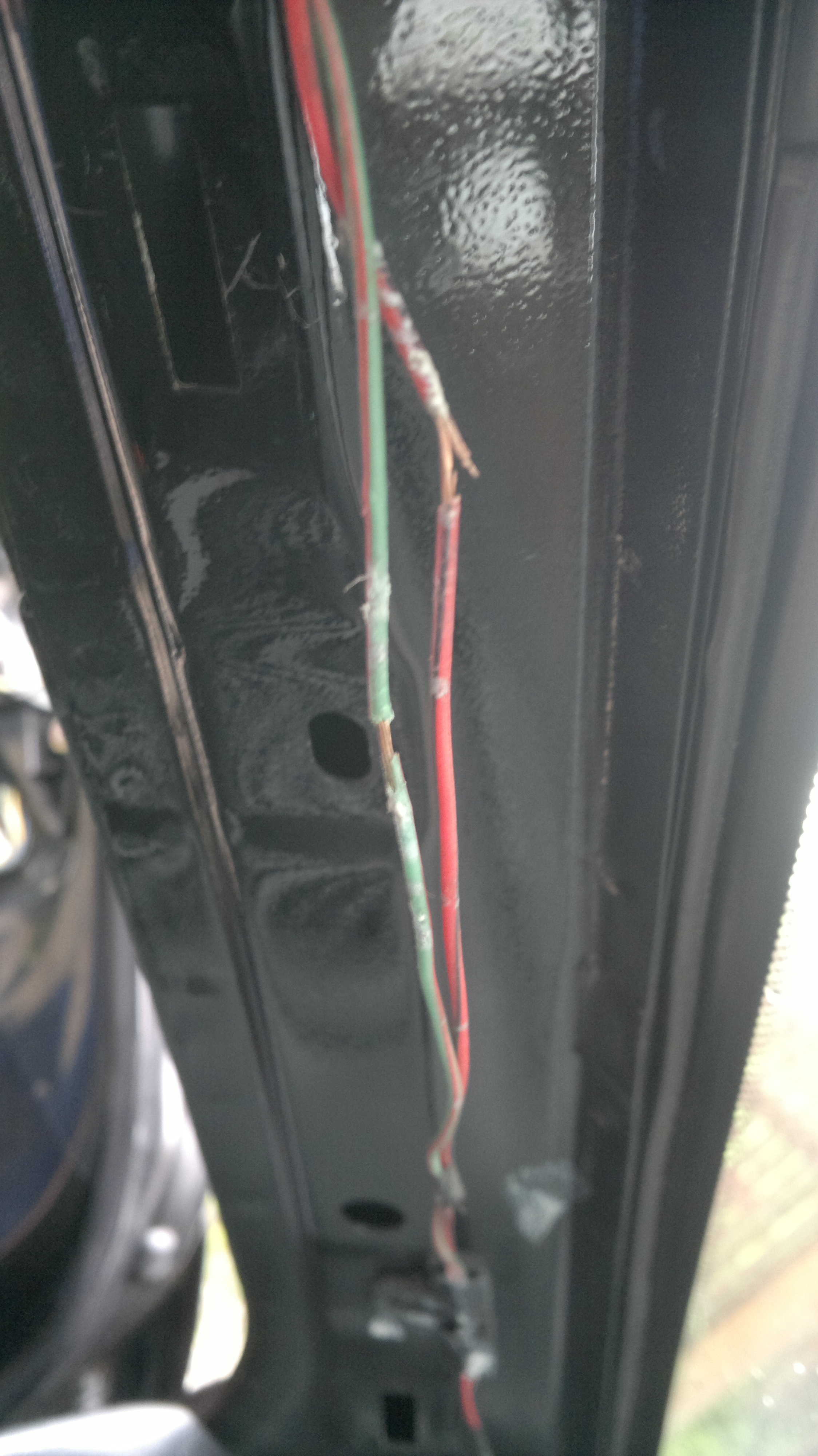 Nach Kabelverfolgung haben wir festgestellt, dass ebenso ein Kabelende im Fahrerfußraum hing und weiter in die fahrerseitige A-Säule verlief. Nach Demontage dieser trauten wir unseren Augen kaum welch ein Pfusch uns da geoffenbart wurde.