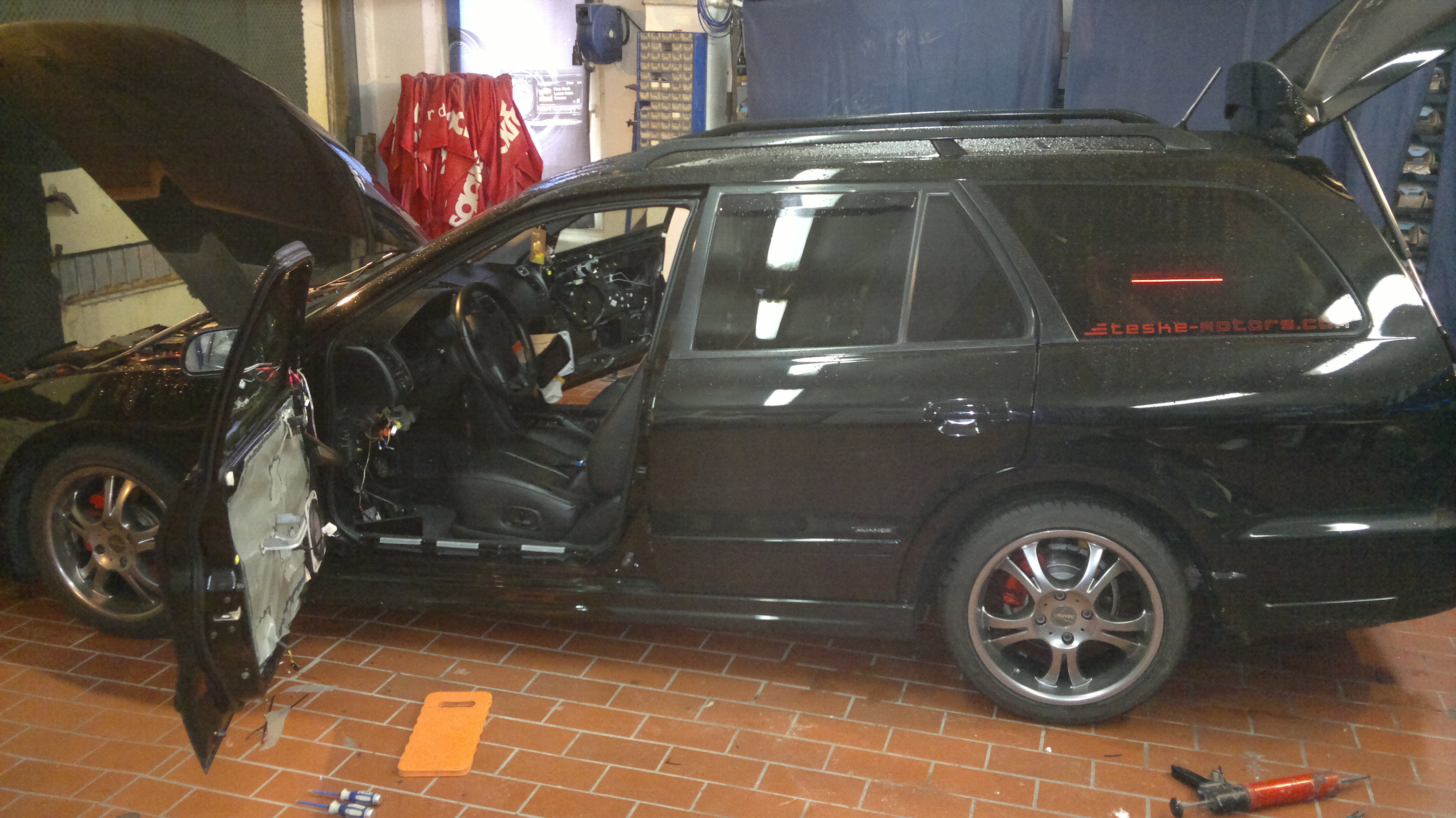 Ziel war es das originale Soundsystem rauszuschmeißen und gegen was Besseres zu ersetzen. Da Hedges in der Nähe wohnt hat er sich zu unserer Runde gesellt und wir haben geschraubt was das Zeug hält.