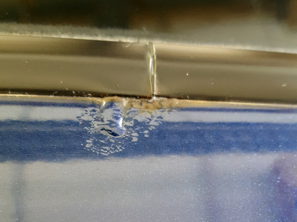 Geht schon, ist aber übel Arbeit. Scheibe muss raus. Wie dr Blubb schon sagt, ist das da doppelt. Das muss auf jedenfall aufgemacht werden, mit wegschleifen ist da nichts. ICH würde das Stück raustrennen und neu machen.
