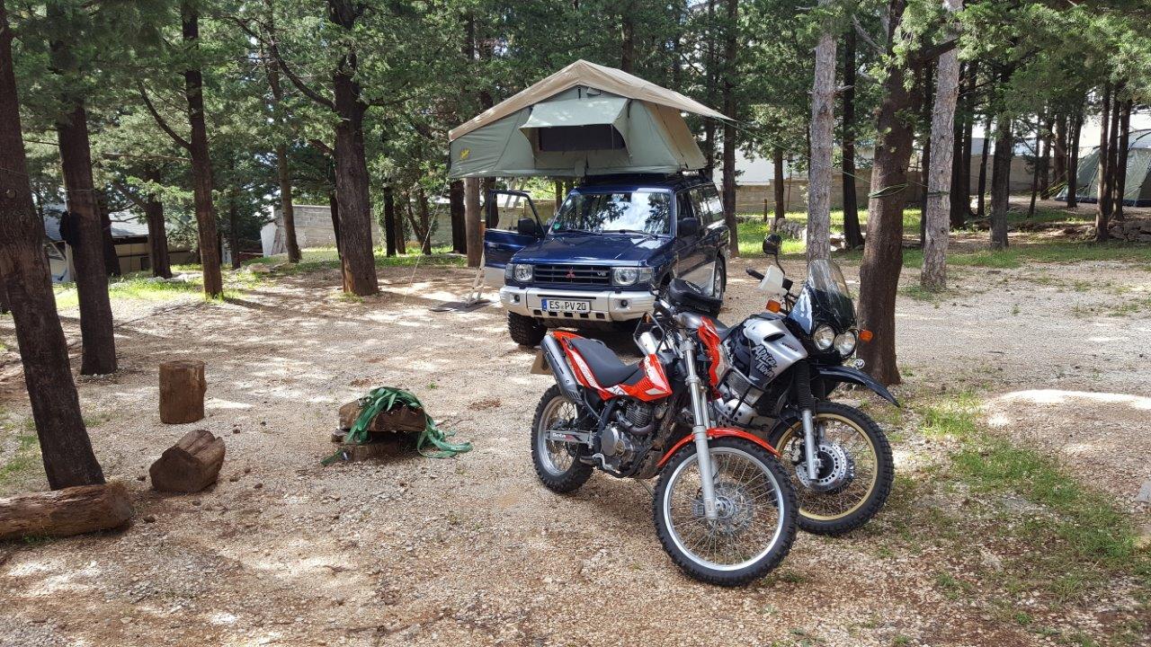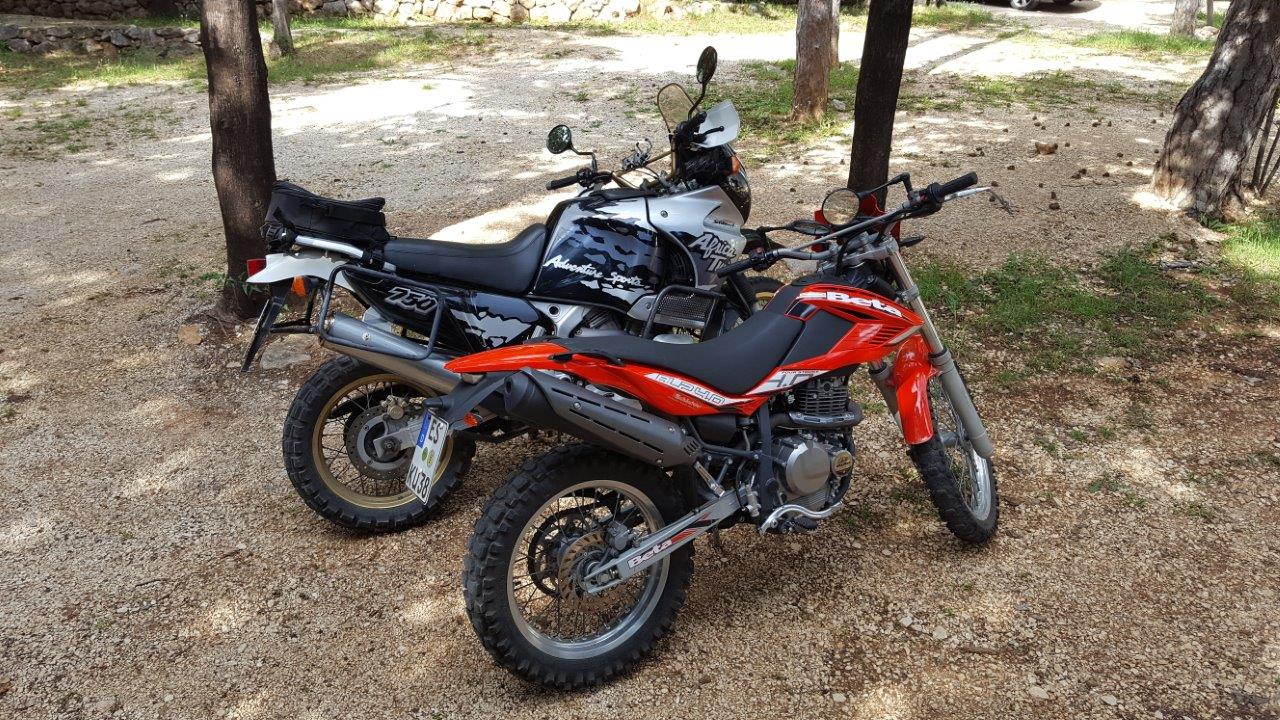Im Moment sitze ich zwischen ROKY und der AfricaTwin unter einem Oliverbaum, natürlich mit einem kühlen Hofbräu.