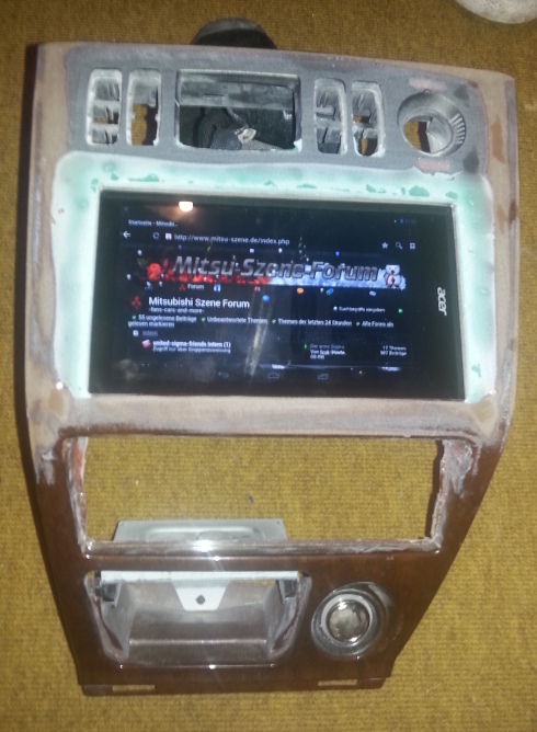 Das Tablet ist wirklich eins der größeren Kandidaten. Nach Einkleben der Blende mußte ich feststellen, es passt nicht. Ihr könnt Euch vorstellen, welche Hemmungen ich überwinden mußte, um das Tablet mit der Feile zu bearbeiten...