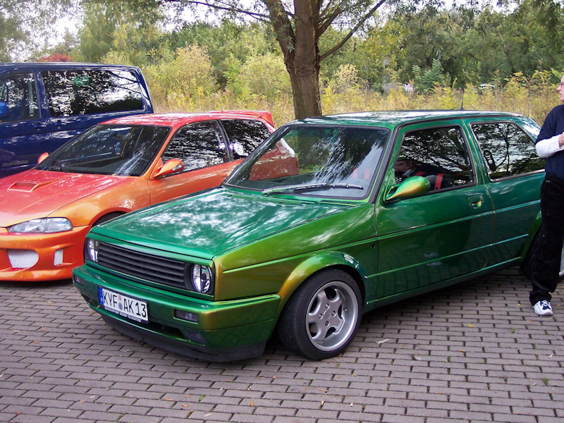 Der war Grün und der Chrom war schwarz überlackiert, ziemlich grausig und total runter, aber halt geschenkt vom Patenonkel als der ausgewandert ist. Der Käfer wurde mir schließlich von der Polizei stillgelegt, mit kaputtem Aufpuff in eine nächtliche Kontrolle. Sportlenkrad nicht eingetragen, Lärmbelästigung (ich war grade am Beschleunigen als der Typ auf die Straße gehopst ist mit der Kelle, ich sofort von Gas und eine paar satte Fehlzündungen rausgehauen. Nachts um eins im Wohngebiet [/size]:D) das eigentliche Aus war aber die ausgeschlagene Vorderachse.