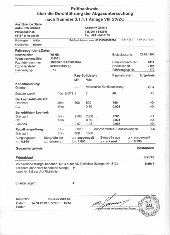Danach erstmal in der Werkstatt die AU gemacht. Hat mit warmgefahrenen Motor direkt funktioniert :thumbup: Alle Werte direkt im Sollbereich :D