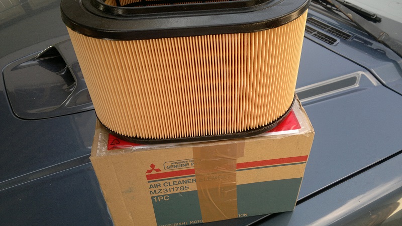 Schaut mal, was der Postbote gestern gebracht hat...Der Pajero steht gerade auf Rampen, und das Getriebeöl läuft fein raus. Der Luftfilter muss auch neu - hat der Postbote gleich mitgebracht!