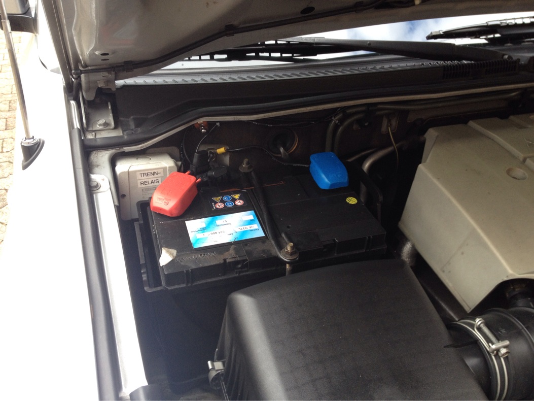 Beide Batterien sind mit jeweils 25 Ampere gegeneinander abgesichert,der Dauerstrom für die 13-Polige Anhängersteckdose kommt von der 2.Batterie,auch wurde im Kofferraum eine zweite 12-Volt-Steckdose verbaut,die ebenfalls den Strom aus der zweiten Batterie erhält.(Kühlbox,Akkus laden,etc).Auch der Arbeitsscheinwerfer hinter der Hecktür bezieht seinen Strom von dieser Batterie.