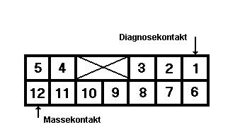 Voltmeter zwischen Kontakt 1 und 12 anschließen.