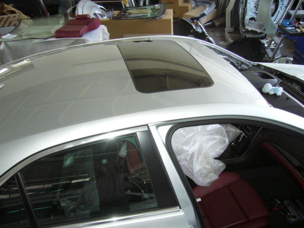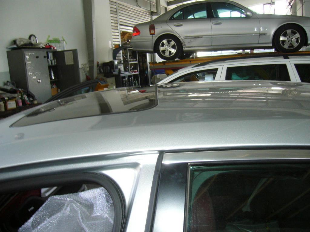 Bilder hab ich nun auch noch ein paar bekommen. Den betreffenden Spriegel selbst sieht man darauf leider nicht. Der ist hinter dem Schiebedachrahmen. Man sieht nur die Schraube mit der der Rahmen gegen den Spriegel geschraubt ist. Letztlich hatte sich der komplette Schiebedachrahmen gesenkt.