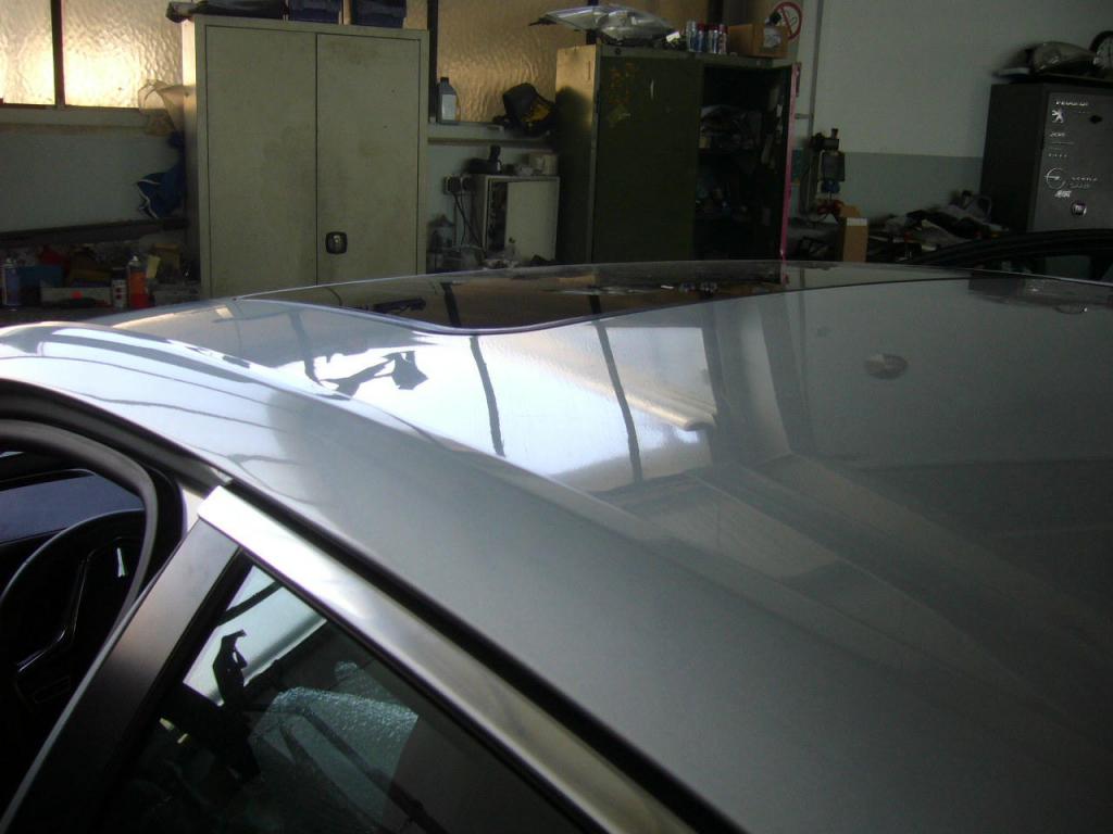 Jedenfalls sieht man sie immer noch deutlich. Außerdem stimmt die Passung des Schiebedaches links auch noch nicht ganz. Es steht ca. 2 mm über.