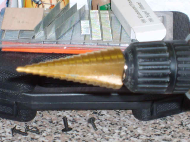 In die Domverkleidung muss nun ein Loch von 25mm, dazu habe ich diesen Bohrer verwendet siehe Bild. Nun zu den Abmessungen die ich verwendet habe. Von der unteren Kante aus habe ich 25 mm abgemessen. Zwischen den beiden Stegen auf der Rückseite waren es so ziemlich genau 60mm, also habe ich die Hälfte (30mm) genommen. Das war nun die Mitte zum Bohren.