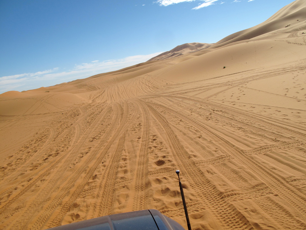 ABER: Fahr mal mit so einem Fahrzeug eine Düne hoch. Und zwar nicht wie die Scheichs mit einem Turbo S ohne Rücksicht auf Verluste, sonst ganz normal im Tourenmodus der Dich IN die Wüste hinein und auch wieder RAUS bringen soll.