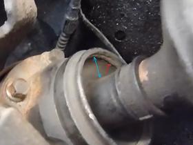 Nimm die Kardanwelle mal in beide Hände und bewege sie kräftig in die Richtungen des blauen Pfeiles. Wieviel Spiel ist da wo der Pfeil eingezeichnet ist?