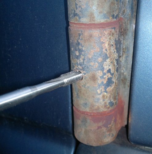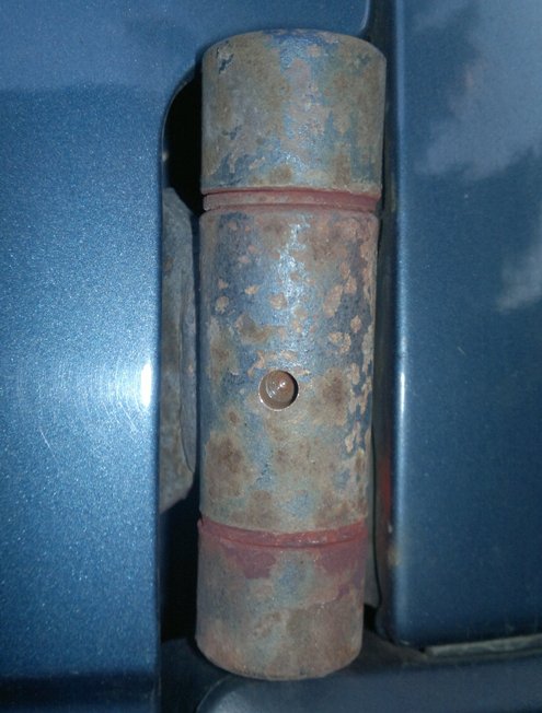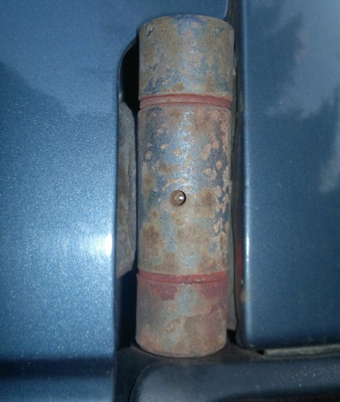 Ich hab diese Anleitung mal befolgt und bei mir ein Loch gebohrt, ziemlich in der Mitte des Scharniers. Allerdings habe ich nach ca. der Hälfte der Dicke des Scharniers aufgehört, das müsste ja langen von der Tiefe her. Bei mir geht da ums verrecken kein Fett rein, und irgendwie habe ich das Gefühl dass da gar kein Bolzen drin ist.