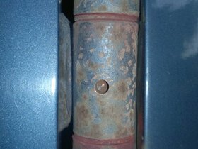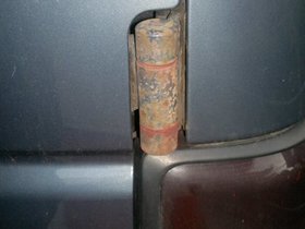 Ich hab diese Anleitung mal befolgt und bei mir ein Loch gebohrt, ziemlich in der Mitte des Scharniers. Allerdings habe ich nach ca. der Hälfte der Dicke des Scharniers aufgehört, das müsste ja langen von der Tiefe her. Bei mir geht da ums verrecken kein Fett rein, und irgendwie habe ich das Gefühl dass da gar kein Bolzen drin ist.