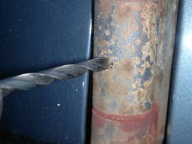 Ich seh ja am Bohrer dass ich zur Hälfte durch bin, und spätestens da müsste ich doch auf den Bolzen gestoßen sein. Ich kann die Tür sogar noch bewegen wenn der Bohrer komplett drin steckt. D.h. da drinnen bewegt sich nichts.