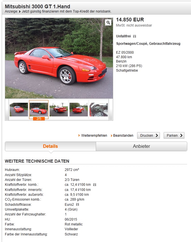 In Erfurt steht ein ranziger roter GT und der will 19.900 !!!!!!!! Und irgendwann bekommt er diese auch !!!!!!!! Beobachte mal Mobile.de - da gehen Kisten (Pajero, GT und und und) für unsagbar viel Euronen raus. Da würde ich nicht Mal nen Euro für spenden !!!!!!!