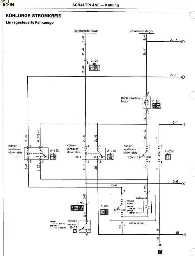 Freitag Abend, nachdem ich schön Ölwechsel gemacht, meine Bremsleitungen mit Wachs eingesaftet und dies und jenes erledigt hab, mache ich die Zündung an und der Kühlerlüfter brummt los. ?(