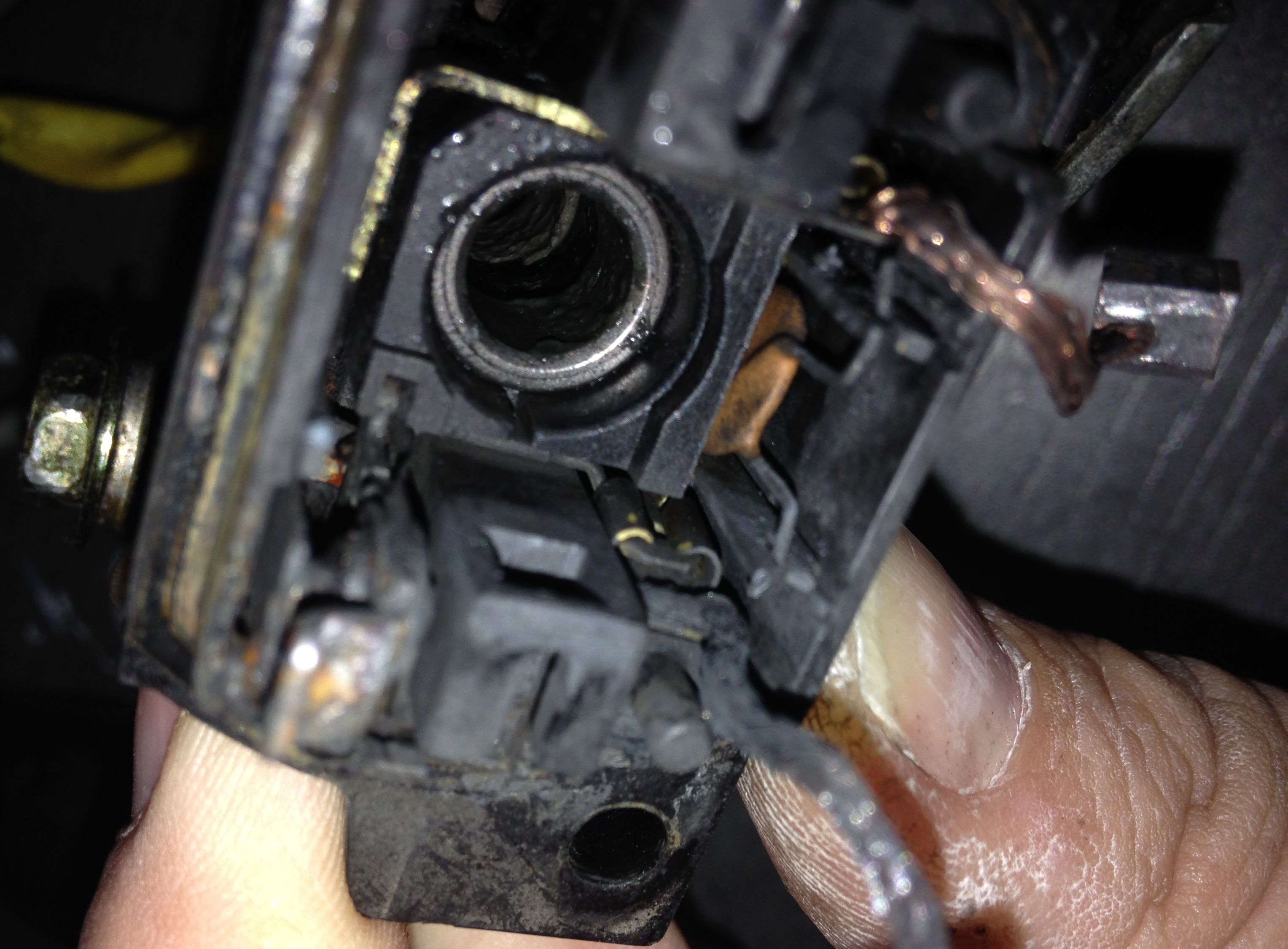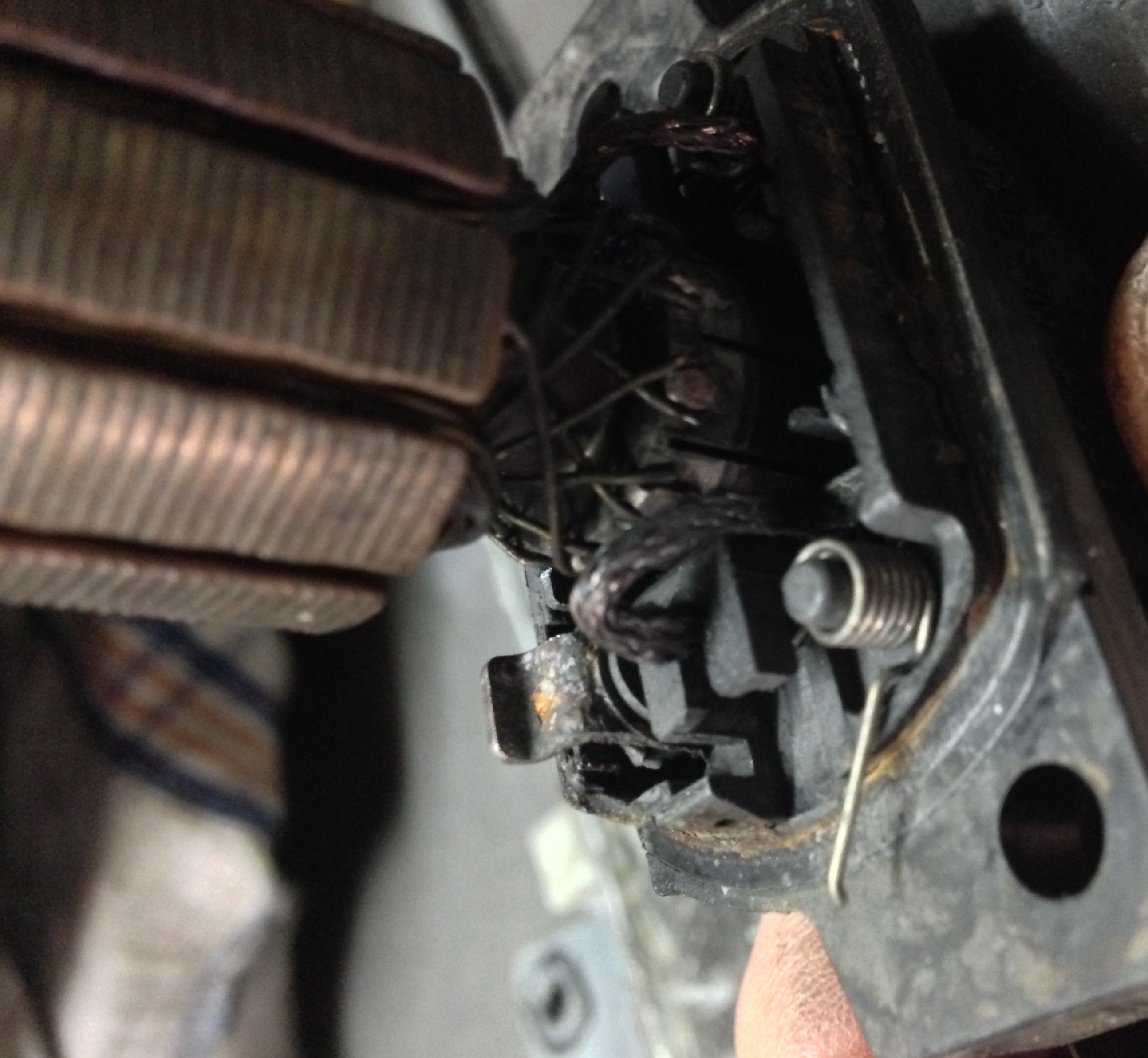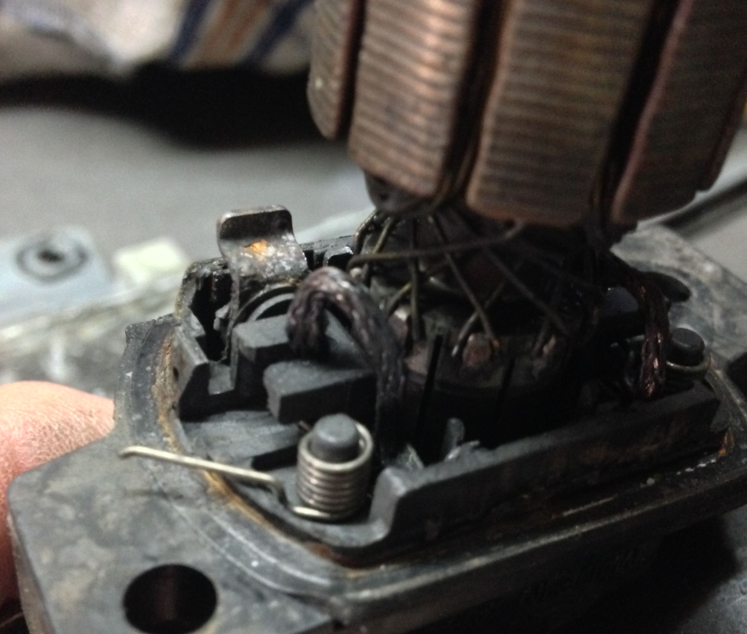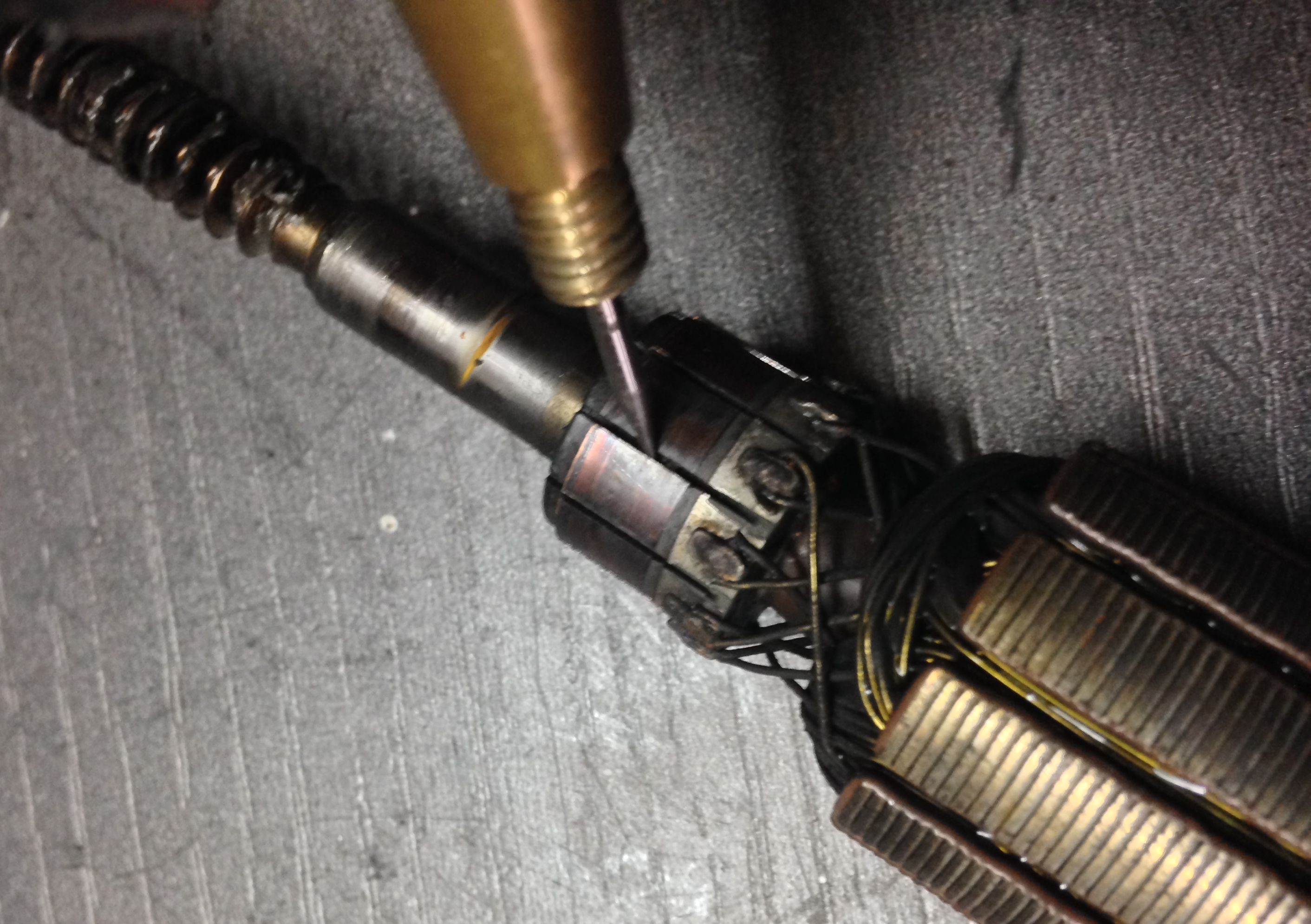 Zwischen den Lamellen des Kollektors, hatte sich sehr viel Abrieb der Kohlen festgesetzt, dadurch hatte die Lamellen einen Schluss.