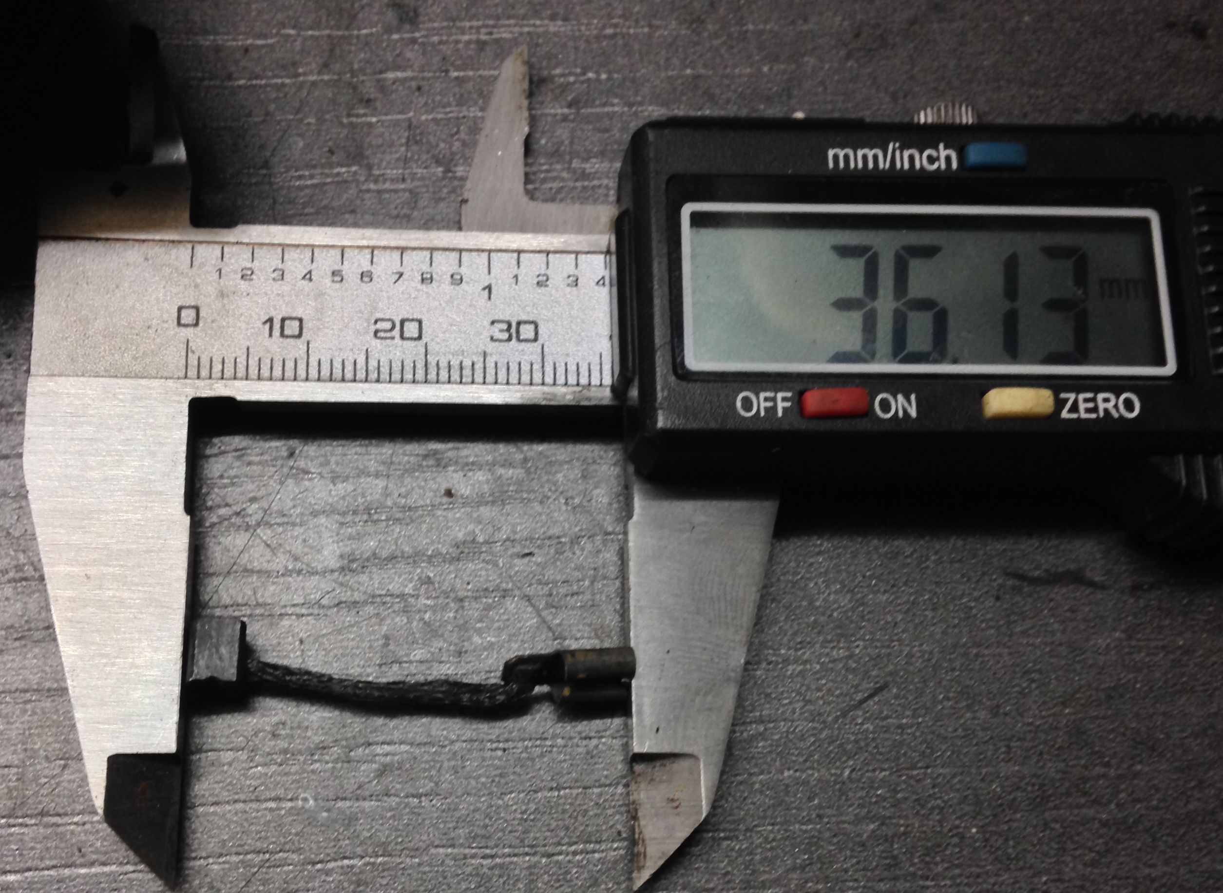 Die Kohlen im defekten Fensterheber waren 5,4 mm lang, die aus den hinteren 7,5 mm.