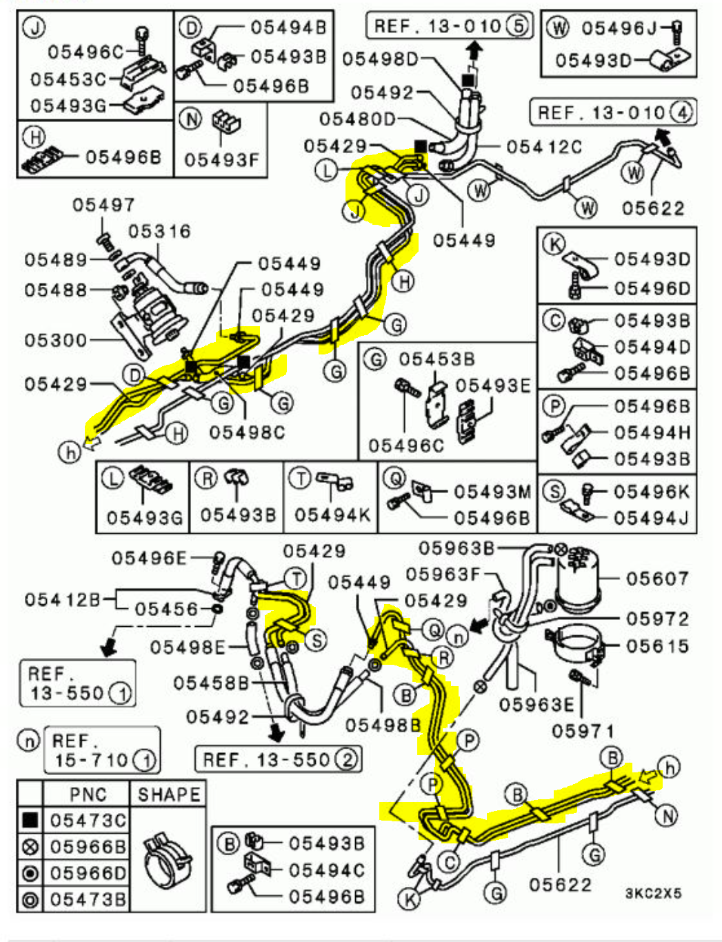 Da mehrere Teilstücke mit der selben Nummer ("05429") beschriftet sind, habe ich die Leitungen mal in dem Bild markiert: