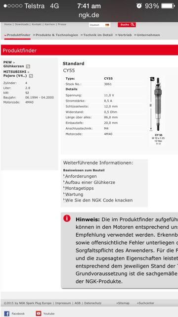 Es werden jedoch auch oft Kerzen für den 4M40 vertickt die aus Stahl sind. Da der Motor die Vorkammer auch aus Keramik hat, ist die Hitzeentwicklung dort höher wie bei anderen Dieselmotoren. Deswegen wurden auch Keramikkerzen verbaut. Nimmst du nun Stahlkerzen, werden diese mit der Zeit abschmelzen. :ideaa