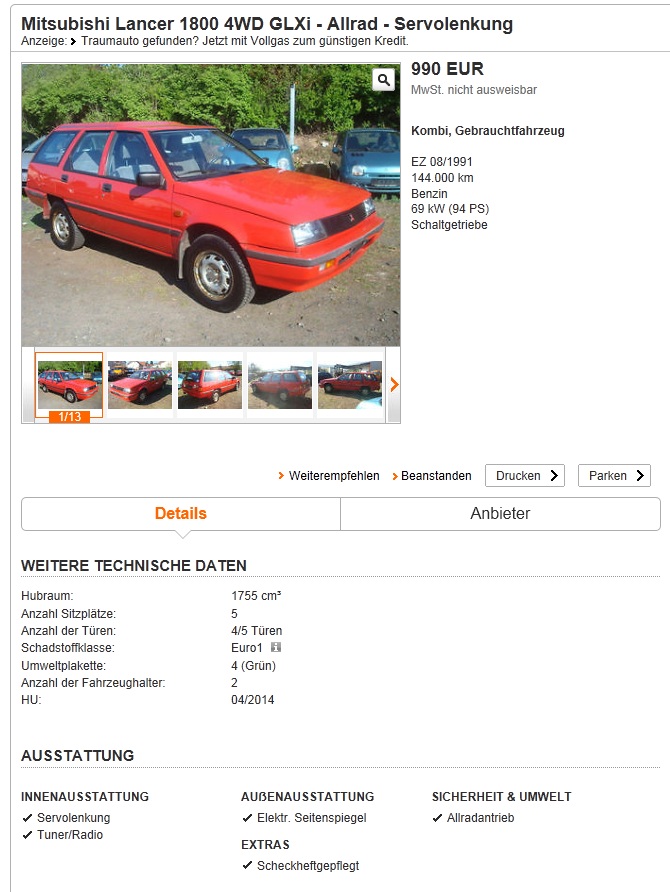 Ich muss einfach den Lancer Allrad Kombi nochmal hier mit Bildern posten weil ich mich total in den verliebt hab.