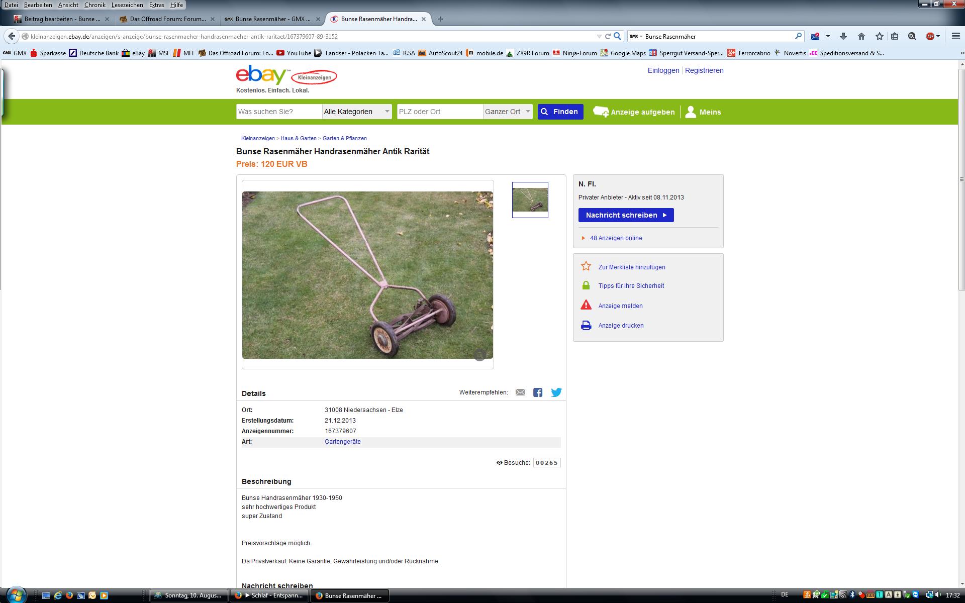 heute war ich mal wieder bei meinem Dad zu Besuch und bin dort mal im Keller gewesen. Zu meiner Überraschung habe ich einen uralten Rasenmäher gefunden. Ich erinnere mich, dass mein Vater damit angeschleppt kam, als ich so ca. 12 Jahre alt war, also vor ca. 37 Jahren. Das Ding war damals schon ein Oldtimer und nirgens waren Teile dafür zu bekommen. Nun gibts heute das I-Net, aber auch da kommt man nicht weiter. Das Ding hat einen Ilo Motor, leider ohne Typenschild. Auf jedenfall ist es ein 2-Takter. Leider hat mein Vater im laufe der Jahre den Tank und die Tankbänder "gebraucht" und diese abgebastelt, der Tank ist nicht original. Frage an die Oldie´s unter uns, kennt jemand diese Firma oder die Typenbezeichnung des Motor´s? Oder weis gar wo man Teile für das Ding herbekommt? Ich würde den gern restaurieren, zumal ich mich erinnere dass der früher gelaufen hat.