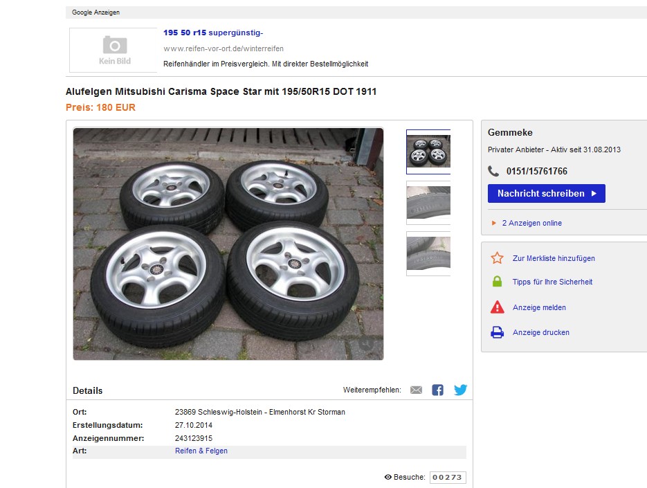 Nach dem ich durch einen netten Zufall über einen Freund preisgünstig an gute neue Winterreifen für den SpaceStar gekommen bin, musste ich feststellen, dass unsere Stahlfelgen nur mit gigantischen Aufwand restauriert werden können.