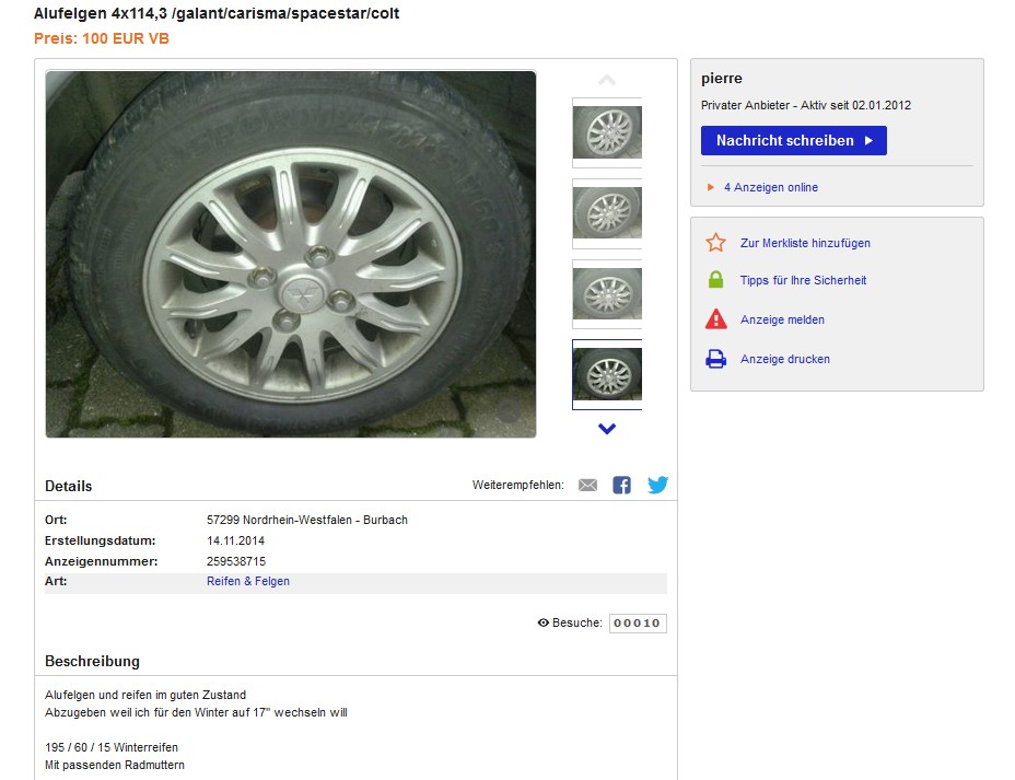 Die Größe der Winterreifen ist 175/65 R14, die Felgen sollten schlichte gut erhaltene gebrauchte Teile sein. Spacy braucht 4 x 114,3 als Lochkreis. Meine bisherigen Ergebnisse bei Ebay lassen erkennen, dass diverse Colt, Carisma oder auch der Volvo V70 solche Felgen hatte. Natürlich gingen auch nicht originale Teile, aber dann sollte ne ABE bei sein.