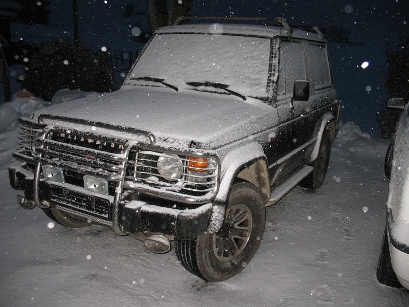 Übernacht kam der erste Schnee für den Pajero in diesem Jahr. Im Allgäu war schon zwei Wochen alles weiß.
