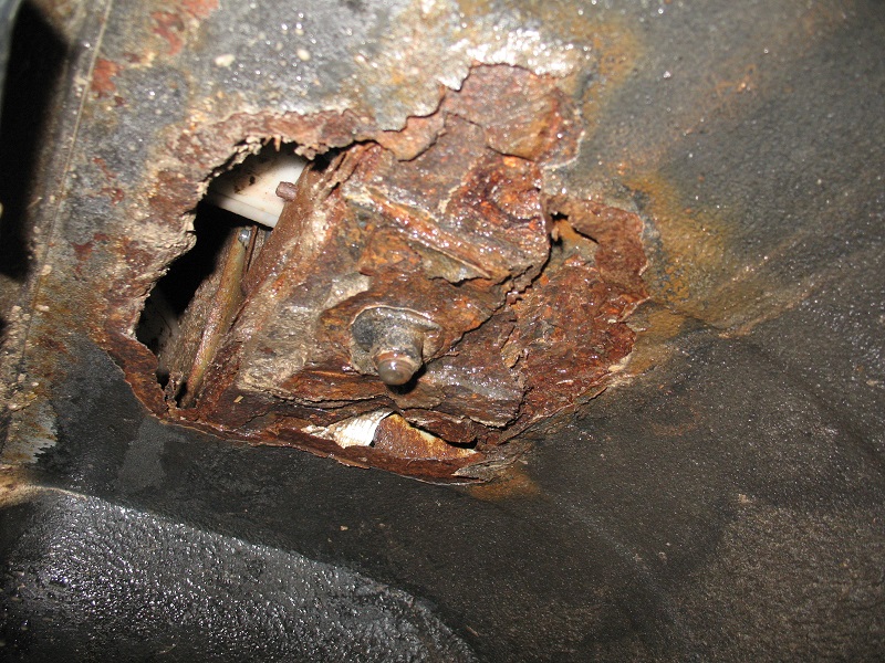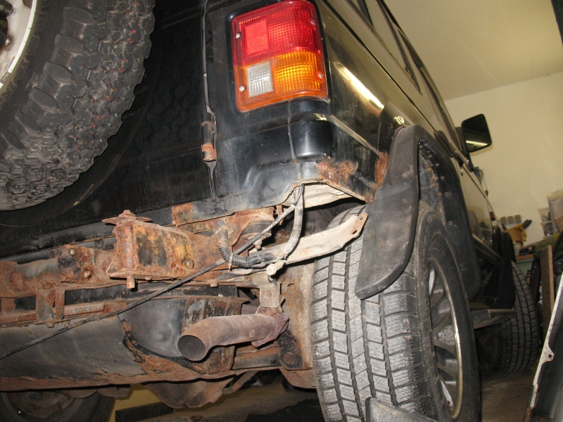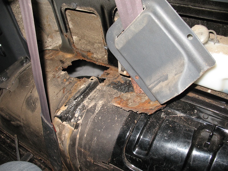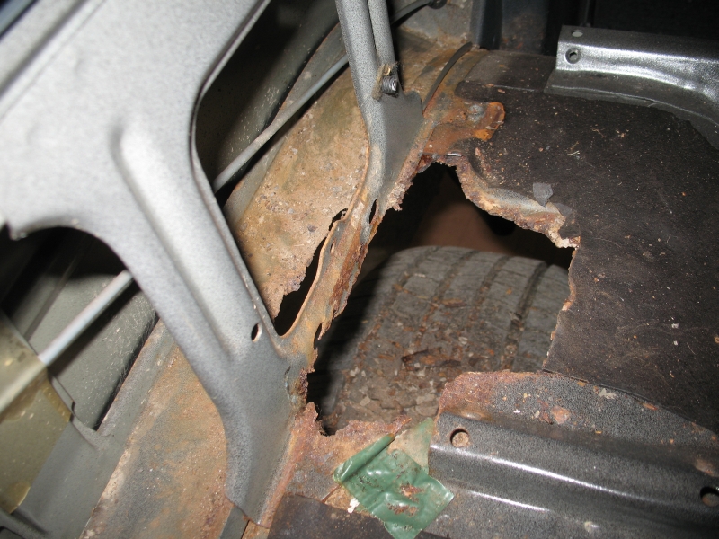 Ich ging der Sache auf den Grund und fand heraus, dass in den hinteren Radhäusern links und rechts große Rostlöcher waren und diese bereits mit Panzertape von innen zugeklebt waren, so dass der Dreck nicht in den Innenraum spritzt.