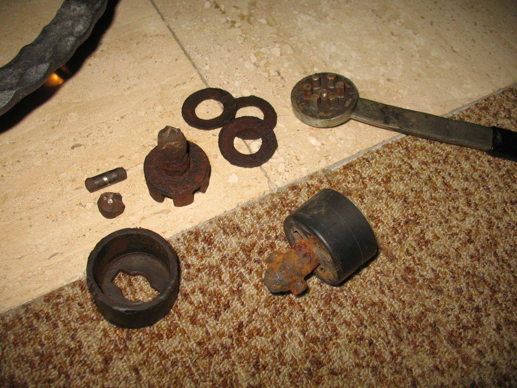 Dieser weiche Schlüssel hat jedes mal leiden müssen. Mehr als 1-2 Hammerschläge hat er nicht ausgehalten. Das kleine Schräubchen hab ich auch regelmäßig erneuert und wieder festgeschraubt.