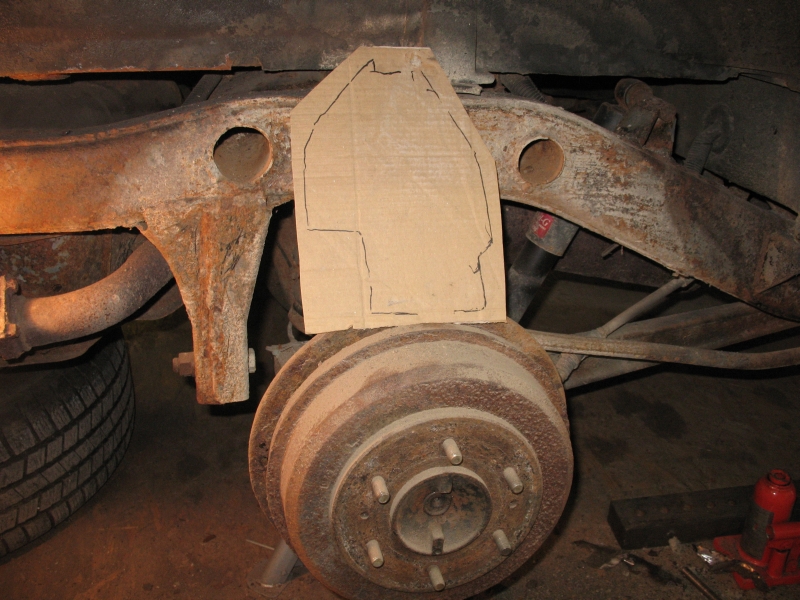 Dann mal an den Radkasten gemacht und das Loch noch etwas vergrößert. Mit der Flex (Einhand-Winkelschleifer) immer außenrum, bis das Blech mal silbern glänzt. Dann gerade Kanten schneiden und mit einem Papier oder Pappe den Umriss aufzeichnen. Nach diesem Muster dann ein Blech aus einem Alten Sapporo A120 geschnitten und schon hat man ein schönes dickes Blech im Fahrzeug. Das Einschweißen geht recht gut, wenn man ordentliche Vorarbeit geleistet hat.