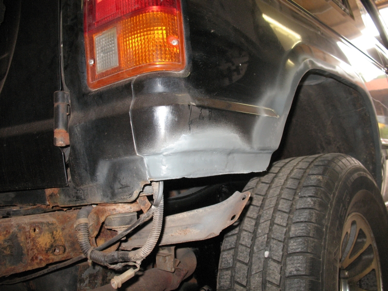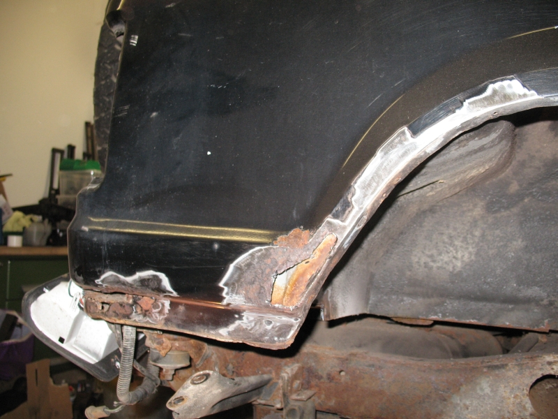 Dann noch am Radlauf außen die zwei Löcher zu schweißen und feststellen, dass es 4-5 Löcher sind. naja egal. Solange es die Flex, das Schweißgerät und genügend Material mitmachen, dann ist das kein Problem.