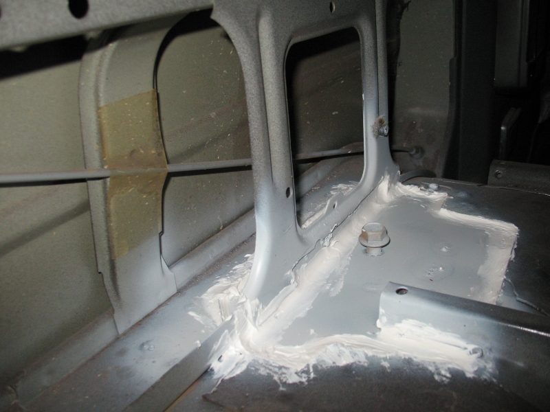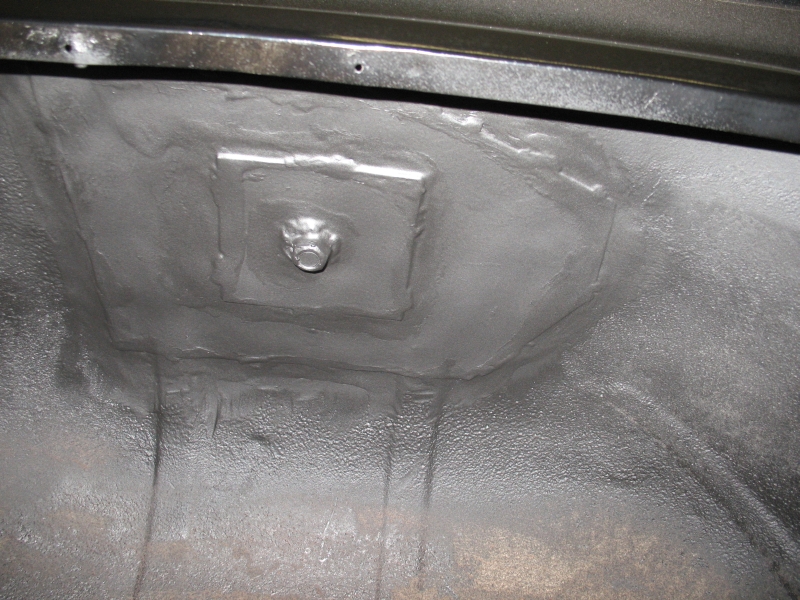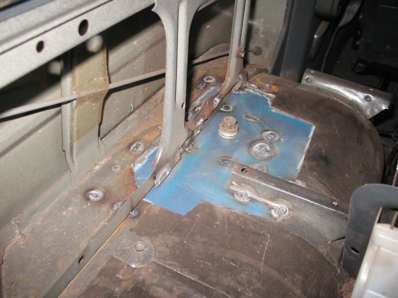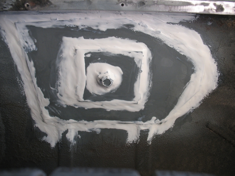Auch diese Platte ringsum anschweißen und anschließend alles grundieren. Diese Schweißnähte müssen nicht durchgehend verlaufen! Um Rost zu vermeiden sollte man das alles mit Acryl abdichten und trocknen lassen. (so habe ich das bei Mercedes gelernt)