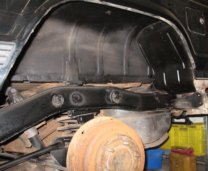 Anschließend ist es gut, wenn man dieses "Body" Zeug drauf spritzt. Also kein Unterbodenschutz, der hart wird, sondern dieses Kautschuk Zeug, was von Haus aus auch in den Radkästen ist, damit man die Steine nicht so laut klappern hört, wenn man welche hochschleudert.