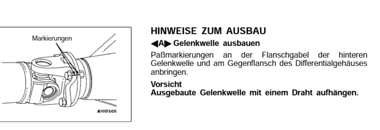 Dann Markierungen am Flansch Kardanwelle/Flanschplatte Differential anbringen, um danach alles genauso montieren zu können wie es war!