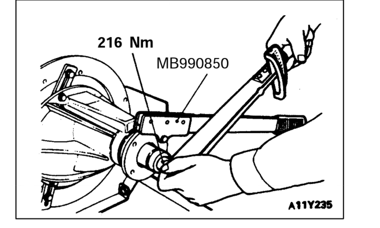 Die Flanschplatte gemäß Zeichnung einfetten, und wieder auf die Welle setzen. Möglichst so, dass die Markierung wieder zu der Markierung an der Kardanwelle passt! Dann die Mutter wieder drauf und festziehen, Drehmoment gemäß Zeichnung, und natürlich wieder mit dem Gegenhalter gegenhalten! (Um die Spannhülse nicht weiter zu stauchen habe ich die Mutter lediglich mit 180Nm angezogen, sie ist ja selbstsichernd.)