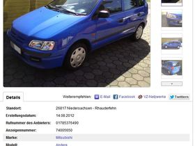 So, bin das Ding heute mal probegefahren. Alles top in Ordnung, es poltert nirgends, er bremst ordentlich, Motor zieht gut, alles schön. Habe dann mal schnell die erste Seite vom Service-Heft mit Namen und Adresse des Vorbesitzers abfotografiert und den anschliessend angerufen. Das Ding hat alles gekriegt was er brauchte, halt nur nicht mehr bei Mitsubishi, sondern in ner freien Werkstatt und Stempel im Heft waren dem Besitzer dann egal. Habe dann sogar die Werkstatt und die Original-Mitsubishi-Werkstatt angerufen und allgemeiner Tenor war, daß das Ding sauber ist. Der Vorbesitzer wußte leider nicht mehr, ob er nicht sogar ne neue Wasserpumpe samt Zahnriemen gekriegt hat und alle alten Rechnung sind leider weggeworfen worden. Nen Satz Reifen samt Felgen hat er mir dann auch gleich angeboten, die noch bei ihm in der Garage stehen. :D
