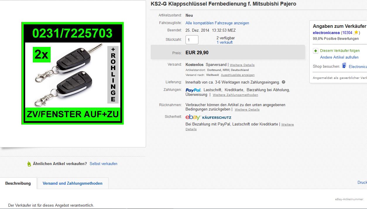 der ein oder andere ist vielleicht schon mal auf die Idee gekommen sie eine Funkfernbedienung für seine Zentralverriegelung zu kaufen. Die Idee ist mir auch gekommen, nur habe ich den Zündschlüssel, die Fernbedienung für die Standheizung und noch ein paar andere Sachen am Schlüsselbund fürs Auto. Da das alles ein bischen viel ist und der Platz in der Hosentasche begrenzt ist, kam ich auf die Idee eine Fernbedienung mit Klappschlüssel zu kaufen. Leider ist das beim V20 ab 96 nicht mehr so easy, weil die eine Wegfahsperre haben und deswegen sitzt im Zündschlüssel ein Transponder. Ohne diesen Transponder fährt ein V20 keinen Meter weit. Aus diesem Grund braucht man einen Transponder für den Klappschlüssel, diesen gibt es aber nicht zu kaufen. Es gibt nun zwei Mögichkeiten. Entweder nimmt man den Transponder aus dem bisherigen Zündschlüssel oder man besorgt sich einen anderen Pajero-Schlüssel (an dieser Stelle ein dickes
