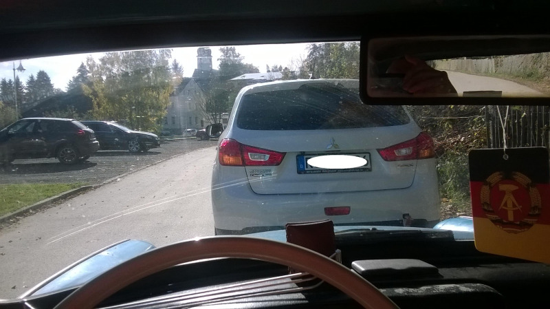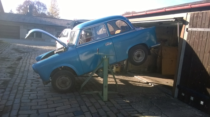 So schaut es aus wen der Trabi Drauf ist. Die Vorrichtung ist für 1t zugelassen und war Für Lada, Wartburg und Trabant geeignet.