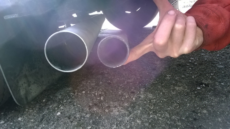 Es kamen Kürzere Dämpfer rein und andere Blattfedern die den ca. 120mm tiefer bringen. Und noch eine neu Auspuffanlage mit 45mm Durchmesser. Original ist was um die 32mm.