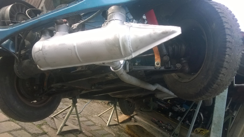 Es kamen Kürzere Dämpfer rein und andere Blattfedern die den ca. 120mm tiefer bringen. Und noch eine neu Auspuffanlage mit 45mm Durchmesser. Original ist was um die 32mm.