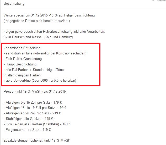 Für das Geld hätte ich die Felgen in CZ auch komplett füllern und lackieren lassen können.