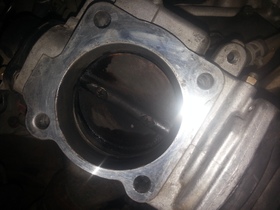 Heute hab ich zusätzlich mal die Drosselklappe raus gebaut, hab ich ja versprochen, da war schon davor etwas Öl, dahinter dann das schwarze Loch $guck Hab es versucht zu reinigen, aber so verwunden wie die Ansaugbrücke ist kommt man nicht weit. Na vielleicht mal Blastern lassen. :wacko: