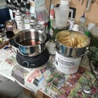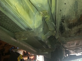 Hier noch das Ergebnis von 8kg Fett, es hat für Schweller und Rahmen sowie die Radhäuser und den Motor + Getriebeträger gereicht, Unterboden hab ich aber nur 90% mit der gewünschten Schichtdicke geschafft, da muss im Frühjahr noch mal was drüber.