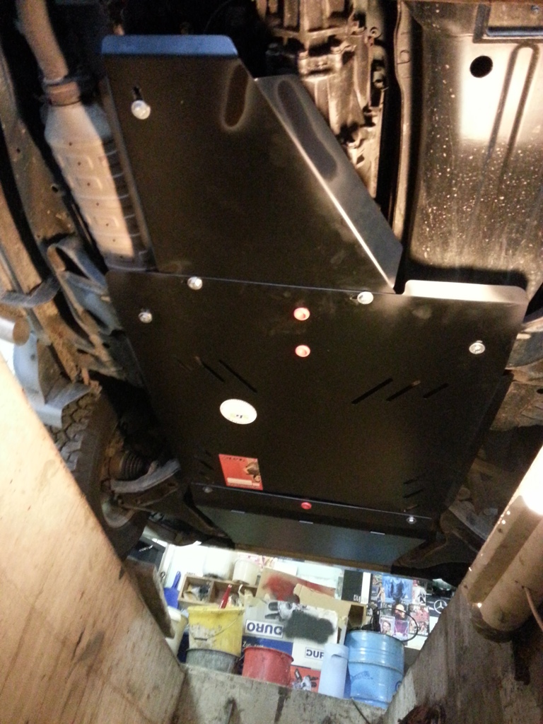 Damit es auch etwas gröber ins Gelände gehen konnte habe ich noch einen Unterfahrschutz organisiert. 2,5mm Stahl für Motor, Getriebe und Verteilergetriebe :whistling: